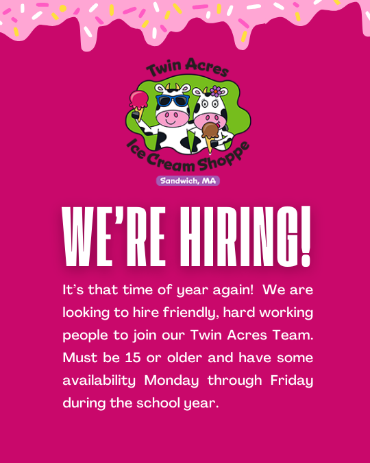 Enjoy your ice cream treat on our beautiful grounds. Twin Acres Ice Cream Shoppe sits on two acres of beautifully manicured land. It all started in the mid-1970s, in a one-car garage, next to a cottage colony built in the 1940s. In 1990, it was redesigned and developed into the Twin Acres of today. The grounds, which are located on historic Route 6A in Sandwich, MA offer patrons a park-like setting with nurtured lush gardens of dogwoods, hydrangeas, daisies, climbing roses, lily's and more beneath old-growth shade trees. Over the years Twin Acres has become a summer mainstay for Cape residents and visitors alike.